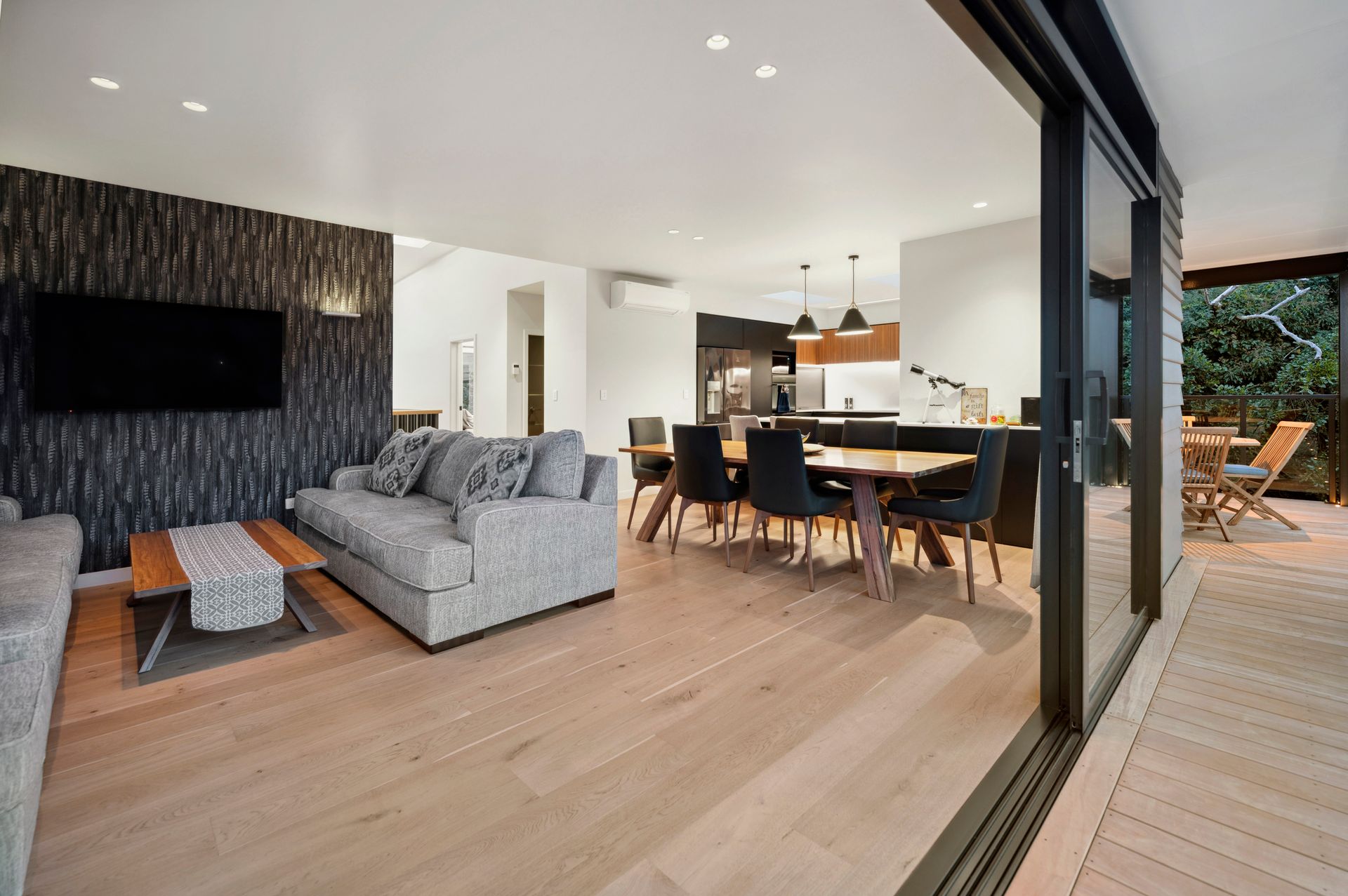 A paramount concern for our clients was the home's maintenance and operating costs in their retirement years. To address this, low-maintenance cladding materials were used, such as colorsteel and fiber cement weatherboards, resilient against the Hawkes Bay sun for extended periods. Additionally, the exterior walls were increased to 140mm to bolster insulation, reducing heating needs in winter and cooling demands in summer. The interior includes a motorised blind system to easily adjust the blinds to optimise sunlight control and minimise heat gain. The installation of solar panels on the roof further offsets energy consumption, ensuring minimal utility expenses. The home is beautiful to live in, with chic black accents throughout its expansive kitchen and bathrooms, plush living spaces and a sheltered deck for gazing at the views.